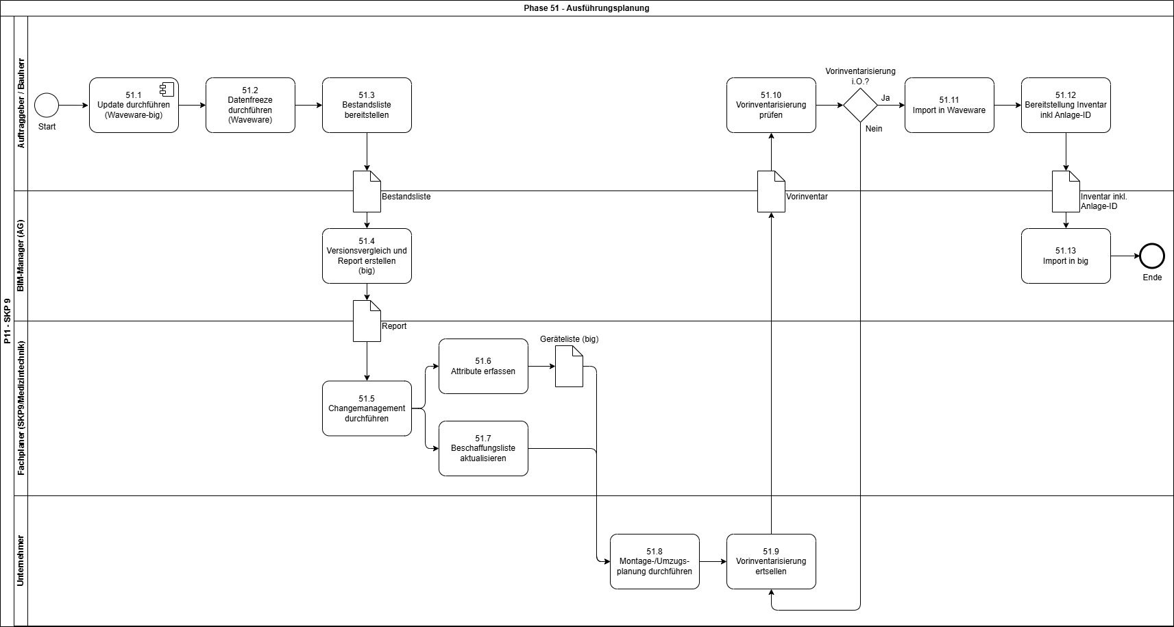 Der Auftraggeber/Bauherr stellt eine aktuelle Bestandsliste aus Waveware zusammen und übergibt diese dem Fachplaner (SKP9/Medizintechnik)